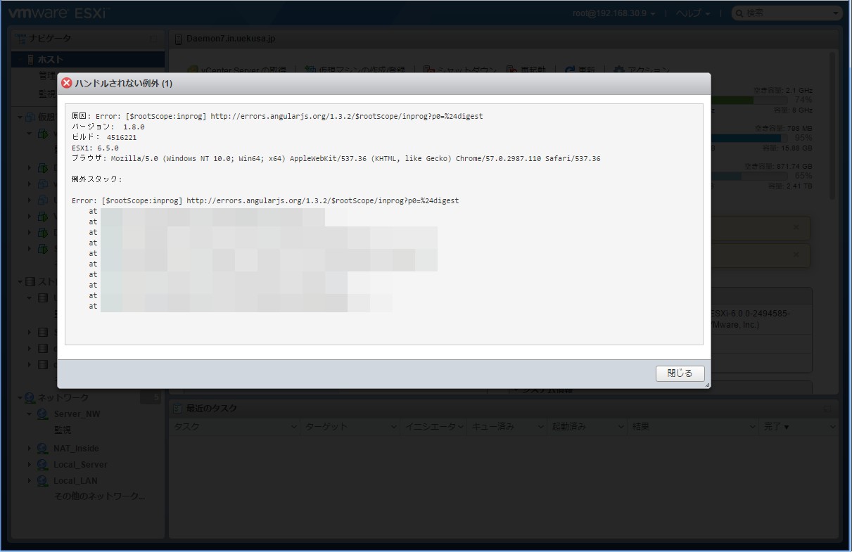 とりあえずFirefoxで凌いでるけど、果たしてChrome更新のせいなのか、angular.jsサイト側の問題なのか。。。(´・ω・`)