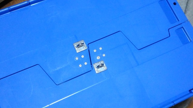 底面は、盗難防止ワイヤーをワンタッチの金具で留められるように、蓋と同じ金具を1個。